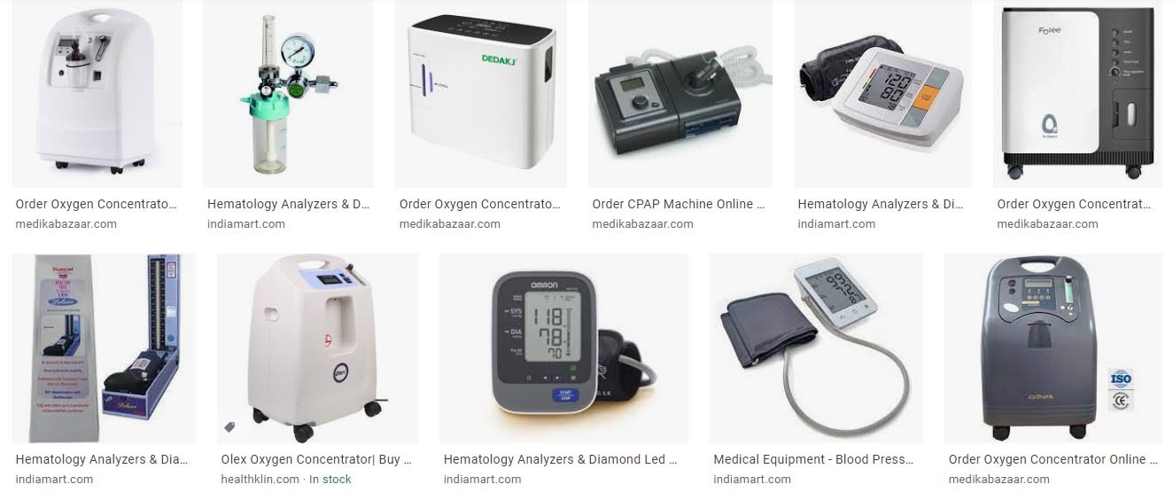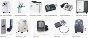 CPAP, O2 concentrators, Cylinders, Glucometers, Nebulizers, Flowmeters, Regulators, Suction, BP apparatus, Thermometers etc.