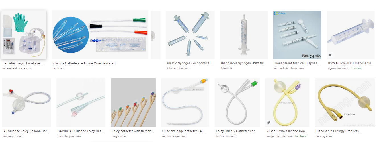 Plastic, Latex & Silicon disposables.